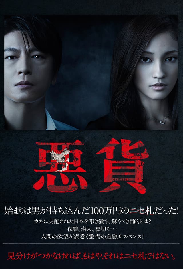 One million yen in elaborate fake bills that no one can tell are not the real deal were picked up by a homeless person. The bills begin to circulate like the blood flowing through blood vessels. These fake bills undermine the Japanese economy like a virus. In order to build a world that is not dominated by money, a plan to overturn the value of the root of money is launched. What is the fate of the man with such a tremendous plan? A millionaire, an undercover agent, community representative, and a genius appraiser that specializes in distinguishing counterfeit bills, speculation is placed on each. Everything leads to a conspiracy of dark organizations trying to destroy the Japanese economy.
